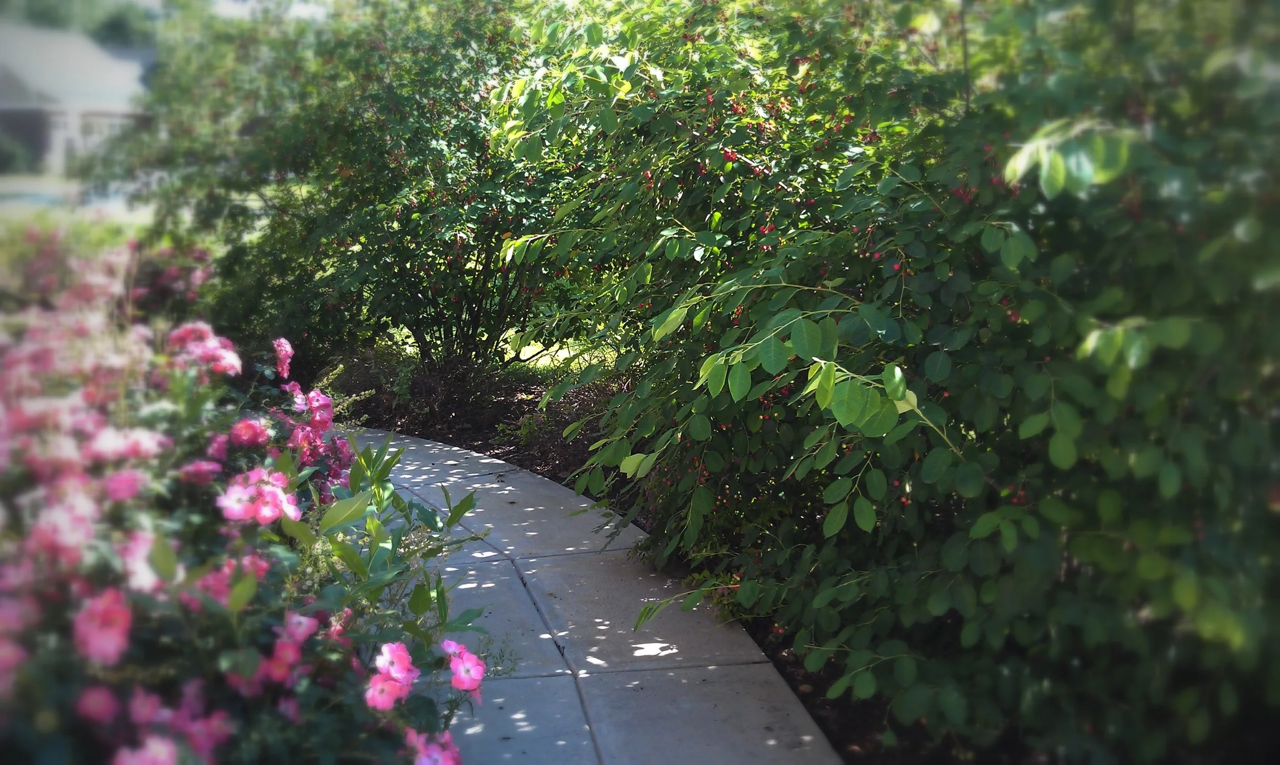 Thorny roses and some aggressive serviceberry were threatening to close off this walkway.